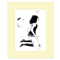 Oryginalny rysunek Andrzeja Mleczki, oprawiony w passe-partout (bez ramy).